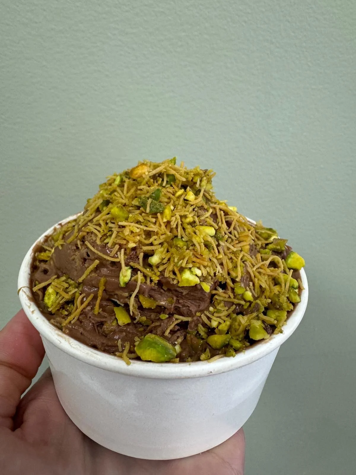 Ashta Bouza Rolls bring together our signature Lebanese ice cream with crushed pistachios, fluffy Turkish cotton candy, and dried rose petals. It's a beautiful balance of textures and flavors that feels both nostalgic and entirely new. And if you're avoiding gluten, we can prepare these without the cotton candy—just let us know when you order.